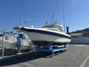 12トンクレーンの他 近年お客様の艇の大型化に対応するため、50tまで艇を上架できる自走式マリントラベリフトを増設しました。60ft.クラス艇までの船舶の上架にも対応します。